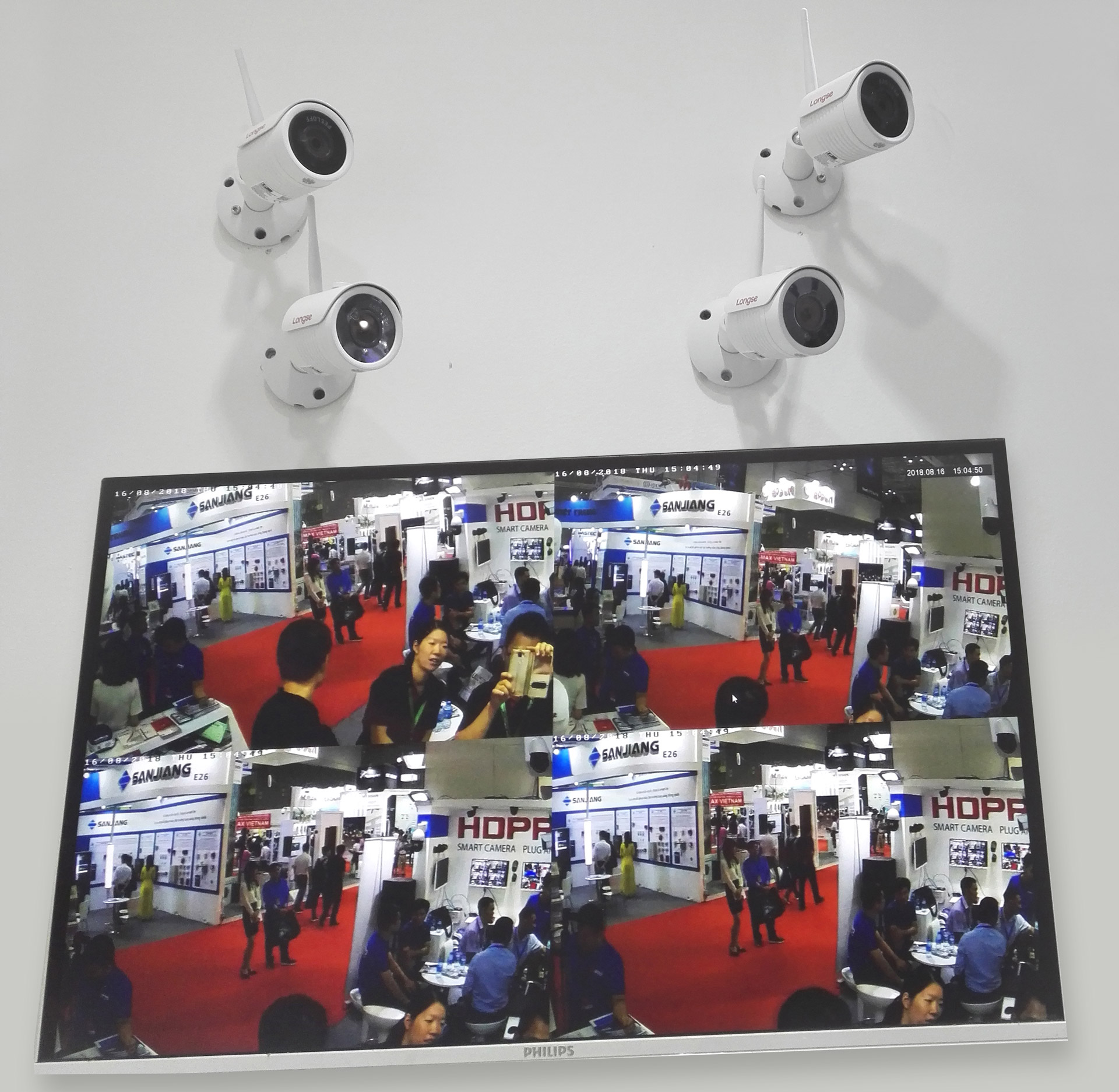 在為期三天的展會(huì)中,長(zhǎng)視科技透過(guò)該平臺(tái),全面展現(xiàn)了智能級(jí)的安防產(chǎn)品,覆蓋家居、商鋪、工廠、道路等應(yīng)用場(chǎng)景。在展位上,智能XVR監(jiān)控套裝及400萬(wàn)WIFI監(jiān)控套裝產(chǎn)品中的效果驚艷全場(chǎng),吸引了眾多客戶駐足體驗(yàn),切身感受安防產(chǎn)品的魅力。同時(shí),越南代理TOAN PHAT還攜手長(zhǎng)視科技共同舉辦,邀請(qǐng)客戶參與“買(mǎi)攝像機(jī)送車(chē)”的活動(dòng),讓現(xiàn)場(chǎng)的氣氛一度高漲。