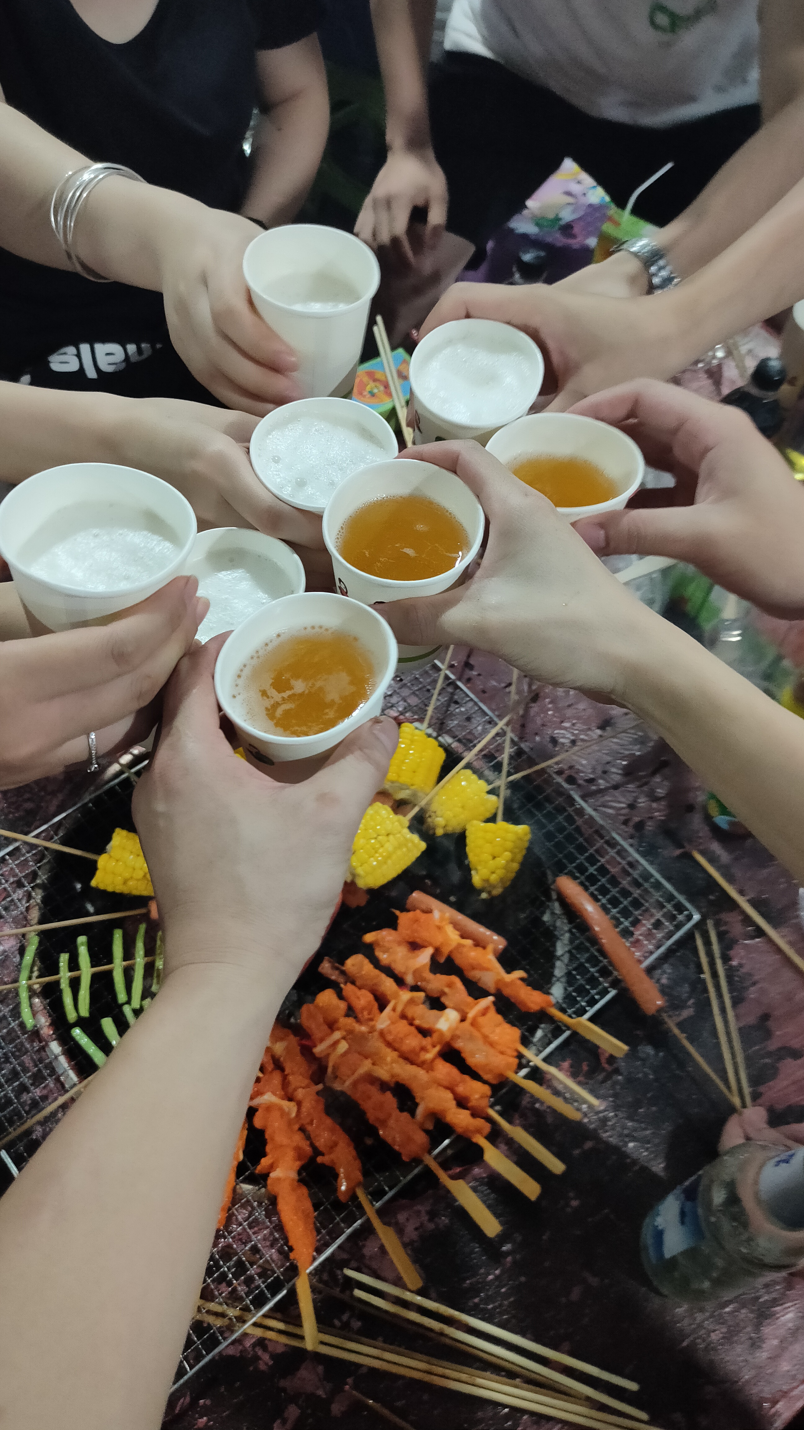 晚上6點(diǎn),大家集合燒烤,在美味佳肴中,推杯換盞,相互交流情感。