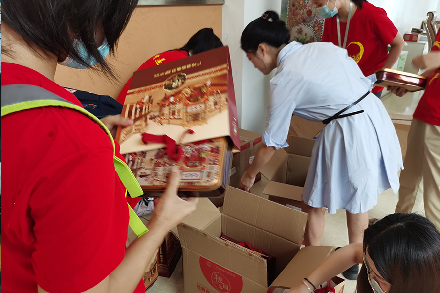 長(zhǎng)視志愿者為服務(wù)對(duì)象現(xiàn)場(chǎng)分發(fā)微心愿物資。值此中秋佳節(jié)即將到來(lái),我們也精心為各服務(wù)對(duì)象準(zhǔn)備了一份月餅,提前祝愿大家幸福安康。