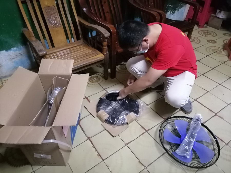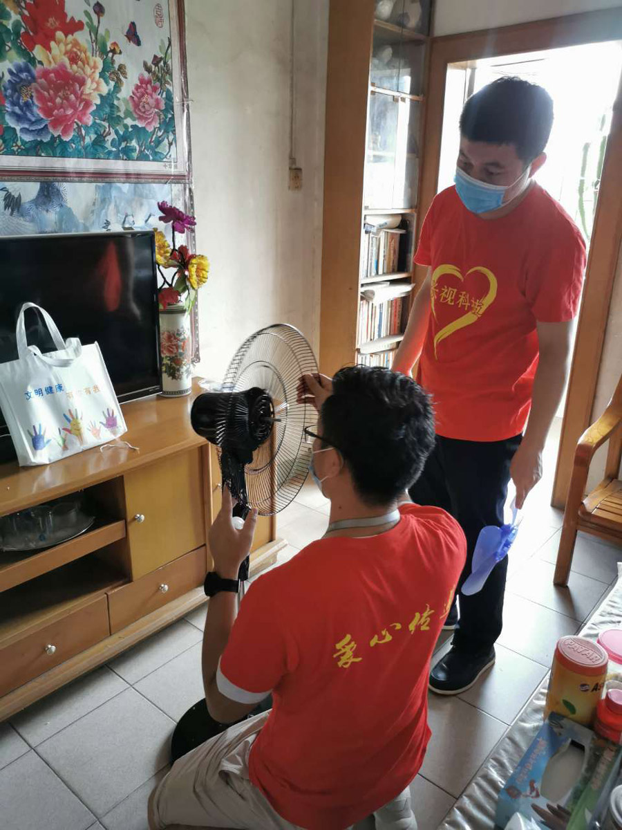 我們的小伙伴在現(xiàn)場(chǎng)給服務(wù)對(duì)象安裝受贈(zèng)物資。
