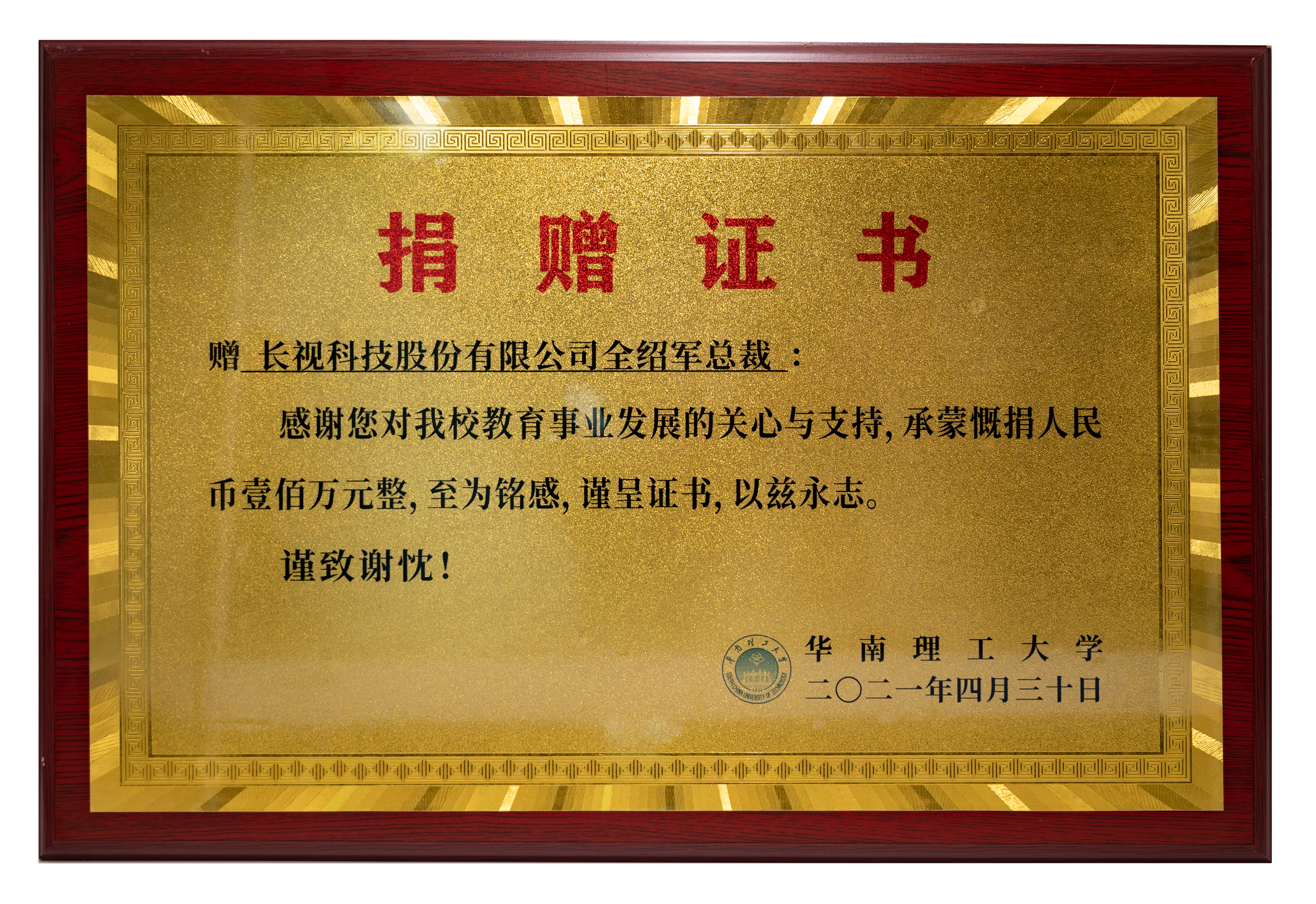百年大計(jì),教育為本。長(zhǎng)視科技致力于成為一個(gè)有社會(huì)責(zé)任,有情懷的科技創(chuàng)新企業(yè),所以長(zhǎng)視科技總裁全紹軍先生進(jìn)行了本次對(duì)華南理工大學(xué)100萬(wàn)元的捐贈(zèng)。長(zhǎng)視科技將長(zhǎng)期支持中國(guó)教育事業(yè)發(fā)展,為國(guó)家教育發(fā)展貢獻(xiàn)力量。同時(shí)希望這筆善款能夠使個(gè)體受教育權(quán)利得到更好更有力的保障,人才培養(yǎng)和科技供給水平逐步提高,未來(lái)將成為我國(guó)經(jīng)濟(jì)社會(huì)發(fā)展的強(qiáng)有力支撐。值此長(zhǎng)視周年慶,繼續(xù)為社會(huì)奉獻(xiàn)綿薄之力,傳遞正能量。