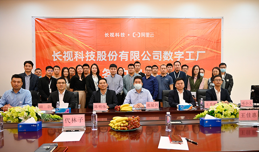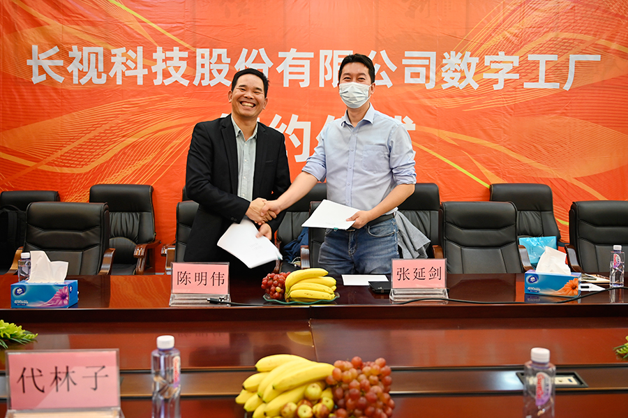 在長(zhǎng)視科技和阿里云高層領(lǐng)導(dǎo)的見證下,雙方就“數(shù)字工廠”項(xiàng)目進(jìn)行溝通、達(dá)成共同的目標(biāo)并簽約。