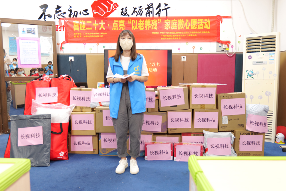 2022年9月20日上午,長(zhǎng)視科技股份有限公司與廣州市黃埔區(qū)殘疾人聯(lián)合會(huì)、廣州市黃埔區(qū)愛海慈航社會(huì)工作服務(wù)中心聯(lián)合舉辦“攜手筑夢(mèng),點(diǎn)亮‘以老養(yǎng)殘’家庭微心愿”行動(dòng)。
