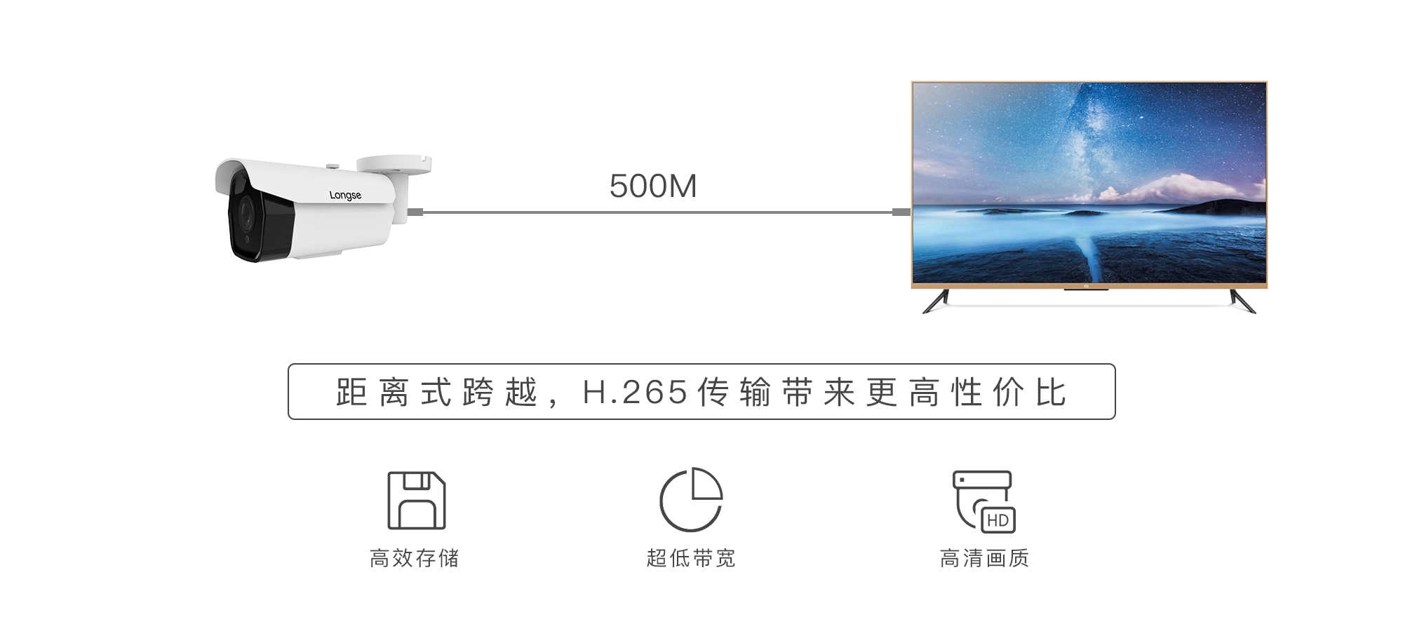 同軸電纜傳輸?shù)木嚯x,可達(dá)500米,同時,該距離仍能保持相同的傳輸質(zhì)量,展現(xiàn)同等的畫質(zhì)。此外,它的壓縮編碼格式H.265也發(fā)揮著優(yōu)勢所在,帶來更小的存儲空間、更低的帶寬及高質(zhì)量的畫質(zhì)。