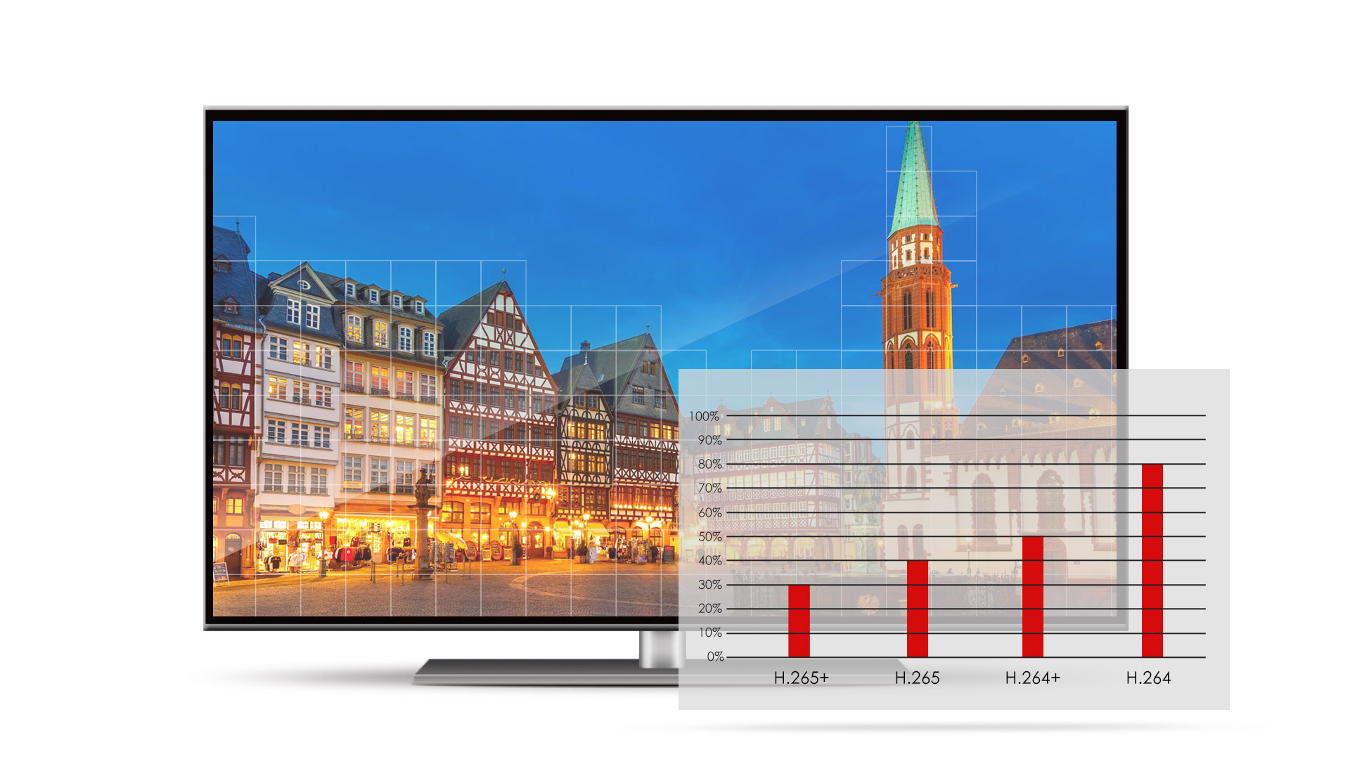 H.265、H.264+、H.264編碼標(biāo)準(zhǔn),能有效降低存儲空間的占用,并維持低碼流、高畫質(zhì)的優(yōu)勢。