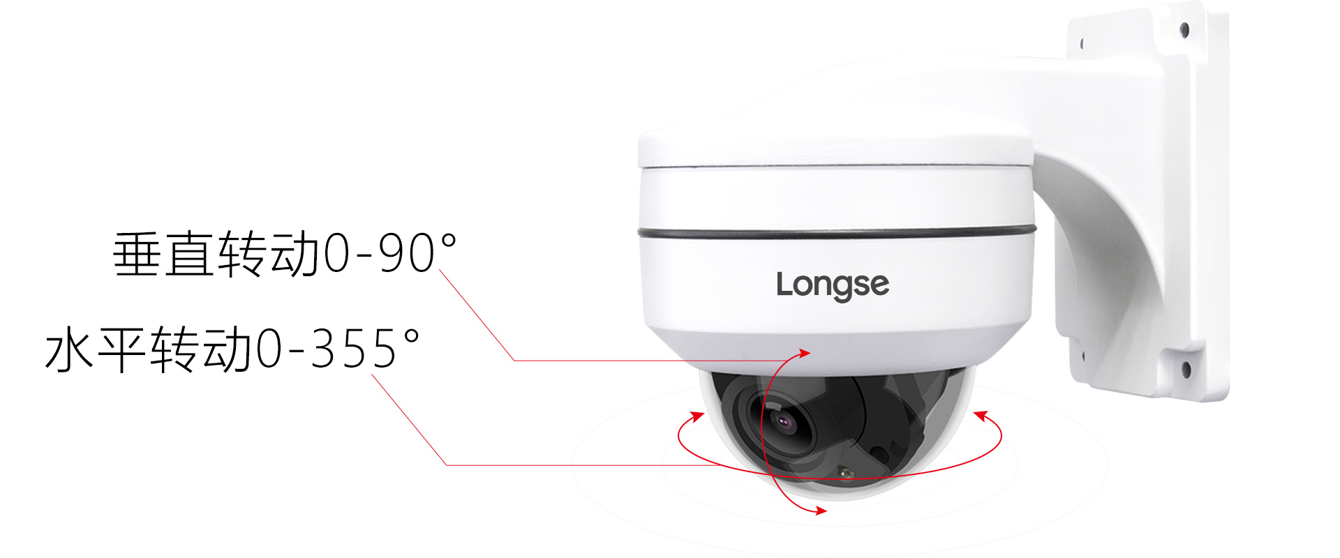 能夠?qū)崿F(xiàn)0-355度的水平轉(zhuǎn)動(dòng),以及0-90度的垂直轉(zhuǎn)動(dòng),讓每一個(gè)監(jiān)控畫面,都一覽無遺。