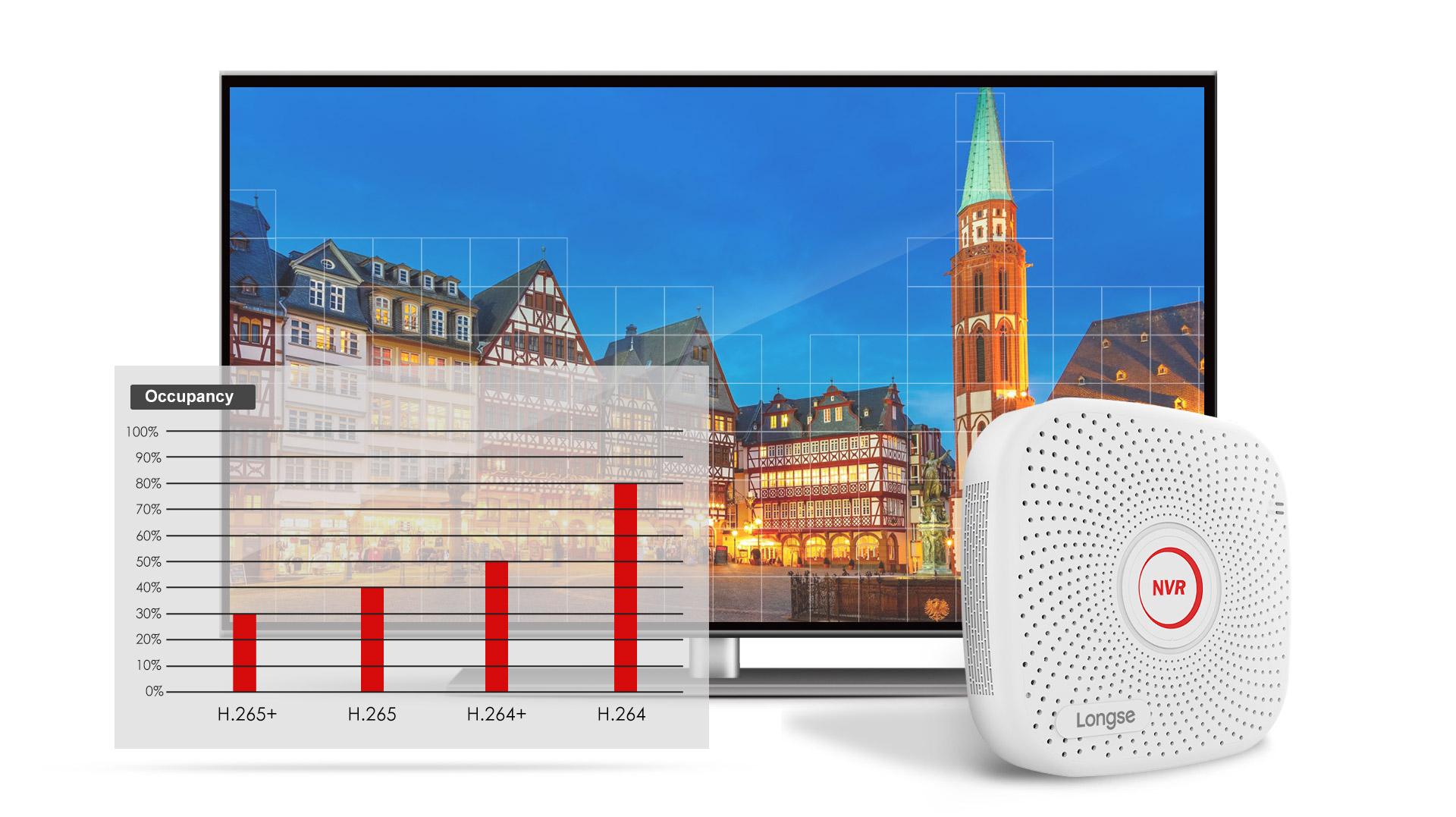 存儲(chǔ)對(duì)于錄像機(jī)來說至關(guān)重要。由長(zhǎng)視500萬PoE網(wǎng)絡(luò)硬盤錄像機(jī)支持的H.265+、H.265、H.264+、H.264編碼標(biāo)準(zhǔn),能有效降低存儲(chǔ)占用,并以低碼流、高畫質(zhì)的優(yōu)勢(shì),