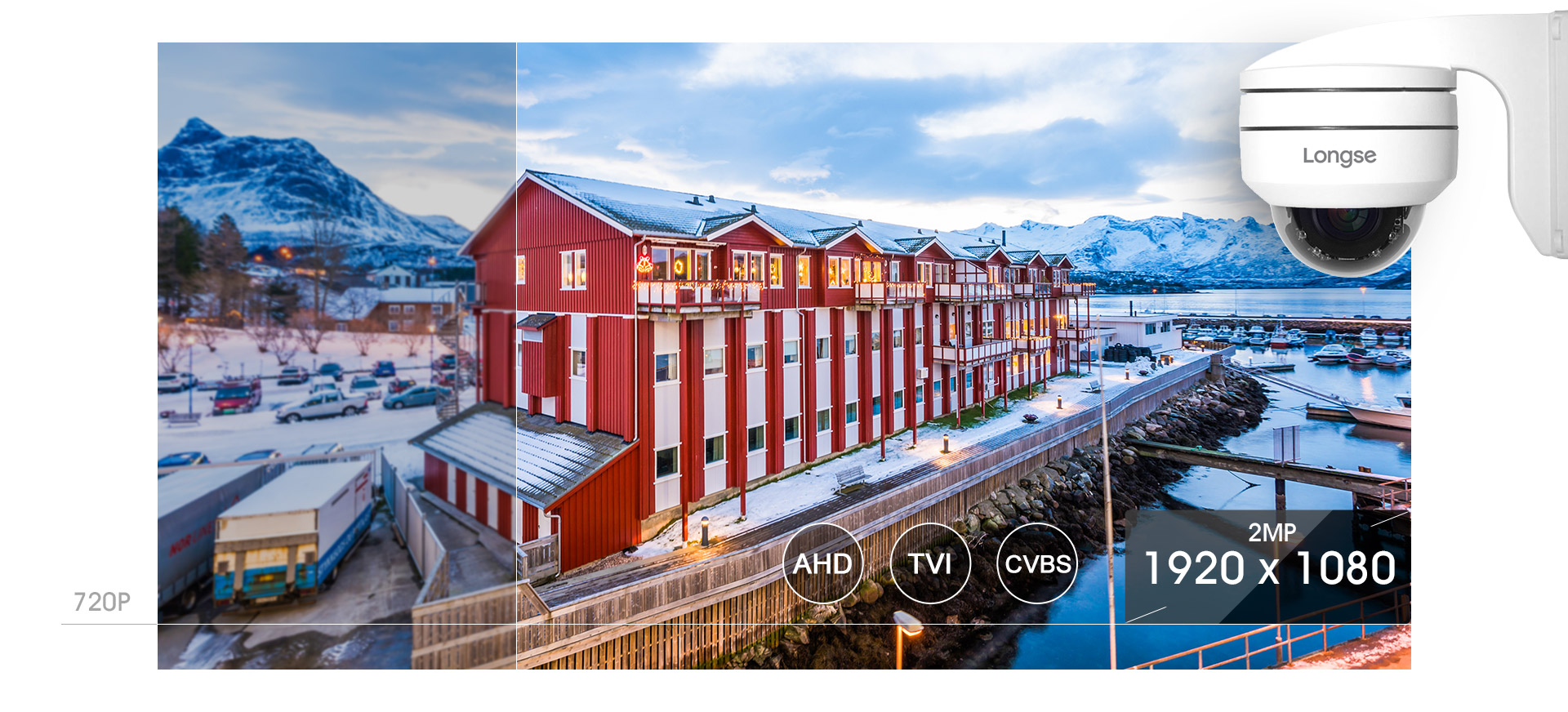 能以1080P的高清分辨率輸出柔和、細膩的畫面。攝像機支持3種信號,AHD、HD-TVI、CVBS,