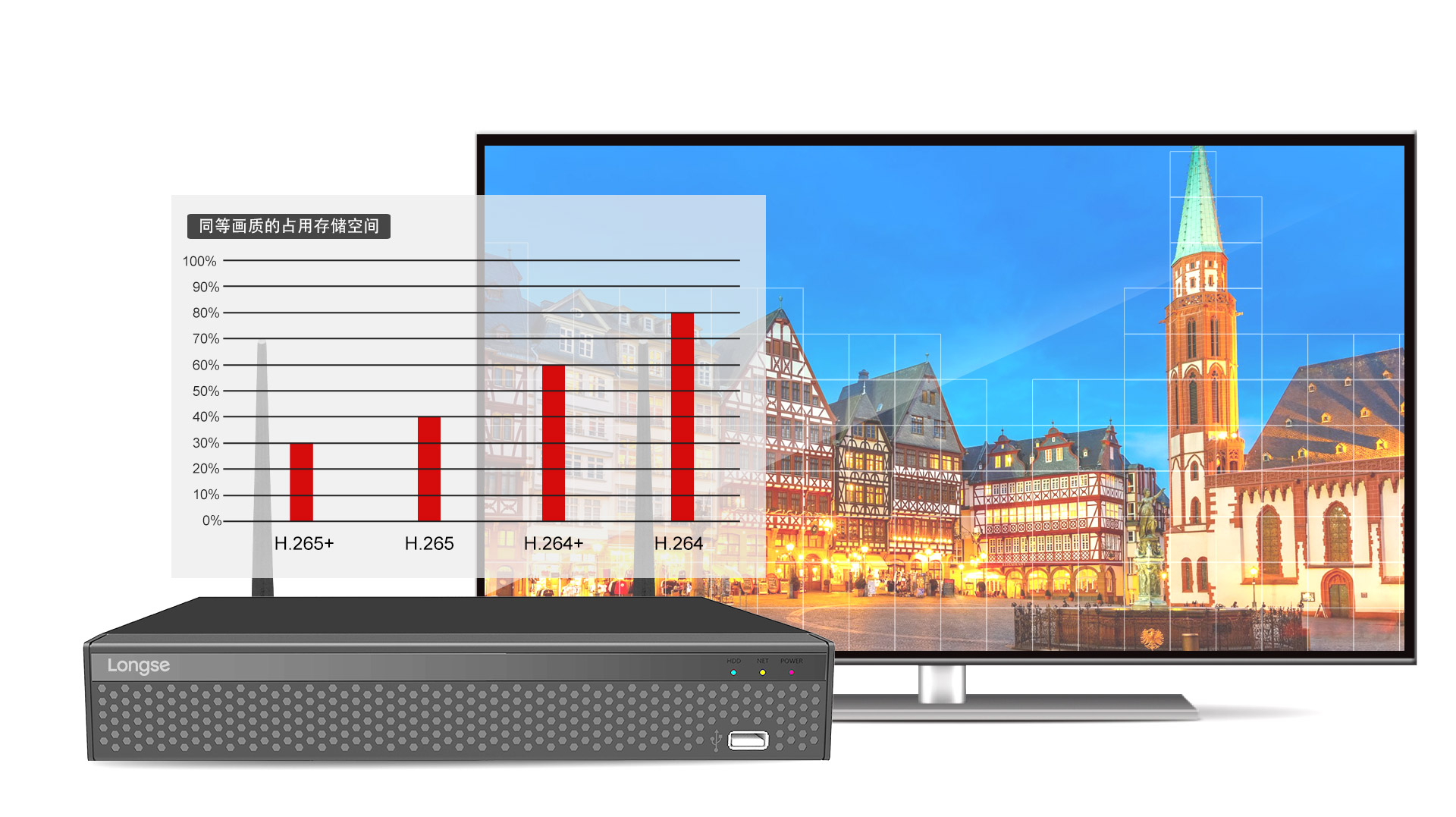 存儲(chǔ)空間對(duì)于攝像機(jī)也是尤為重要。長(zhǎng)視4路Wi-Fi網(wǎng)絡(luò)硬盤(pán)錄像機(jī)支持H.265+、H.265、H.264+、H.264編碼標(biāo)準(zhǔn),能有效降低存儲(chǔ)空間的占用,并具有維持低碼流、高畫(huà)質(zhì)的優(yōu)勢(shì)。